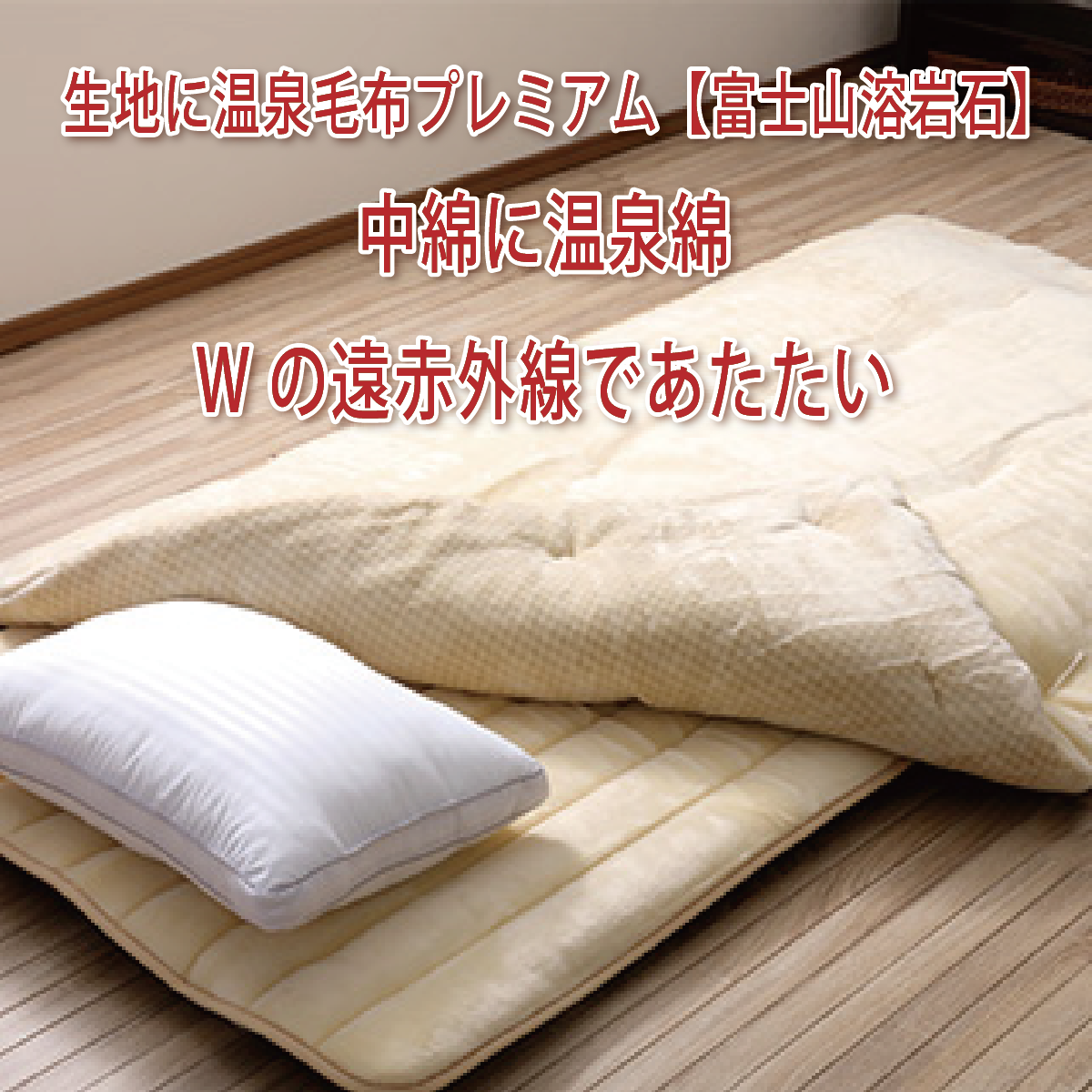 《格別のぬくもり》富士山溶岩石を練りこんだ温泉毛布プレミアム。遠赤外線W効果と職人技で叶える、至福の一枚