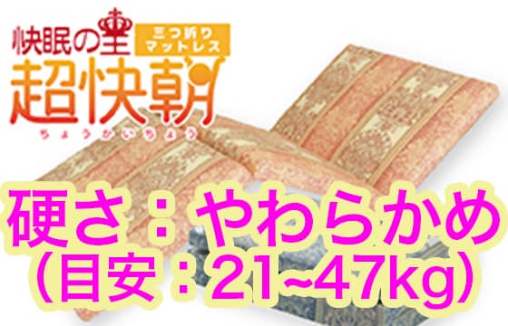 「腰いい寝」「快眠の王」と基本構造は同じですが、厚さが6.5cmで三つ折りタイプになります。フローリングでも底つき感・底冷えなく快適に眠りたい方におすすめです。